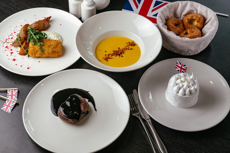 Sunday Roast: Roasted beef, lamb, or chicken served with potatoes, vegetables, and gravy.